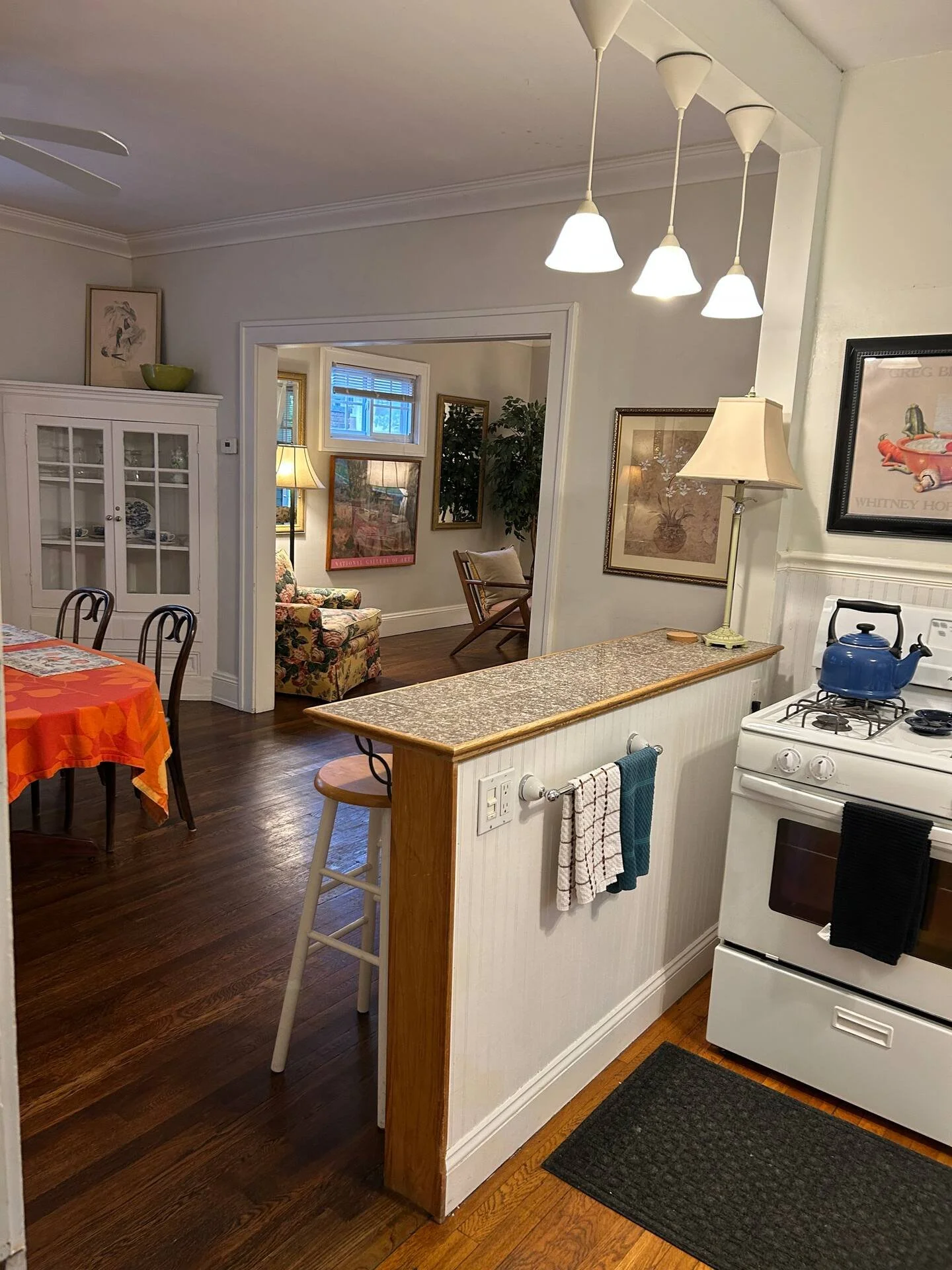 This is a very spacious & soulful 1st Floor, 2 bedroom apartment, just 7 minutes from the Cleveland Clinic! We knocked the wall down between the kitchen and the dining room, and this move really opened the space nicely, so, the chef is not cut off from the liveliness of her/his guests. It has a covered balcony which is excellent for meals outside and evening cocktails.